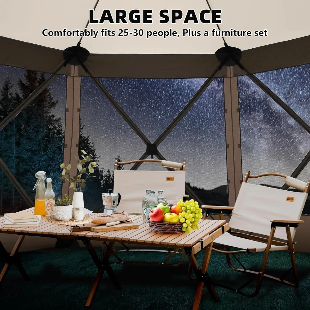 - 【Spacious and Comfortable】Our 15FT x 15FT camping tent has enough space for up to 25-30 people and furniture, with high ceilings providing plenty of headroom.