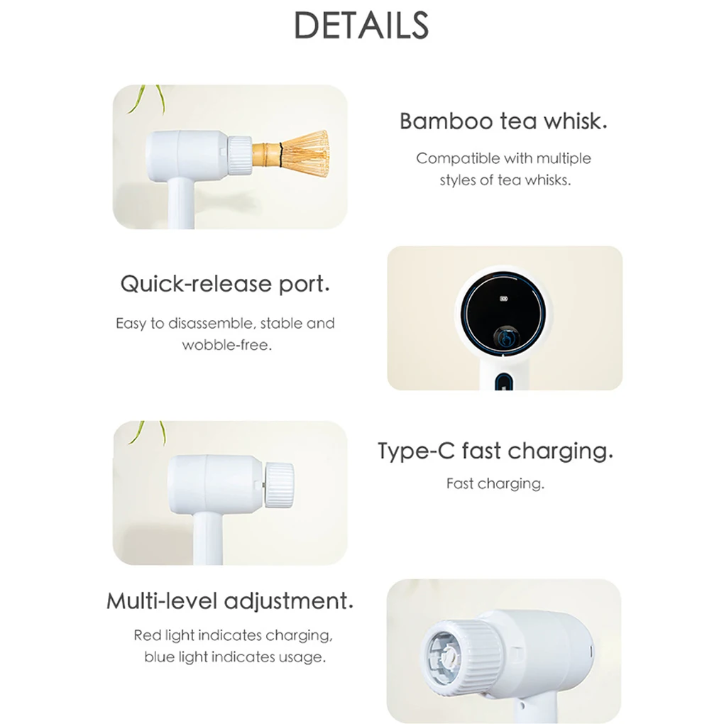 Quick stirring matcha: With electric matcha stirring, you can enjoy perfectly frothed matcha in seconds, saving you time and energy while ensuring that the matcha is smooth and free of clumps every time