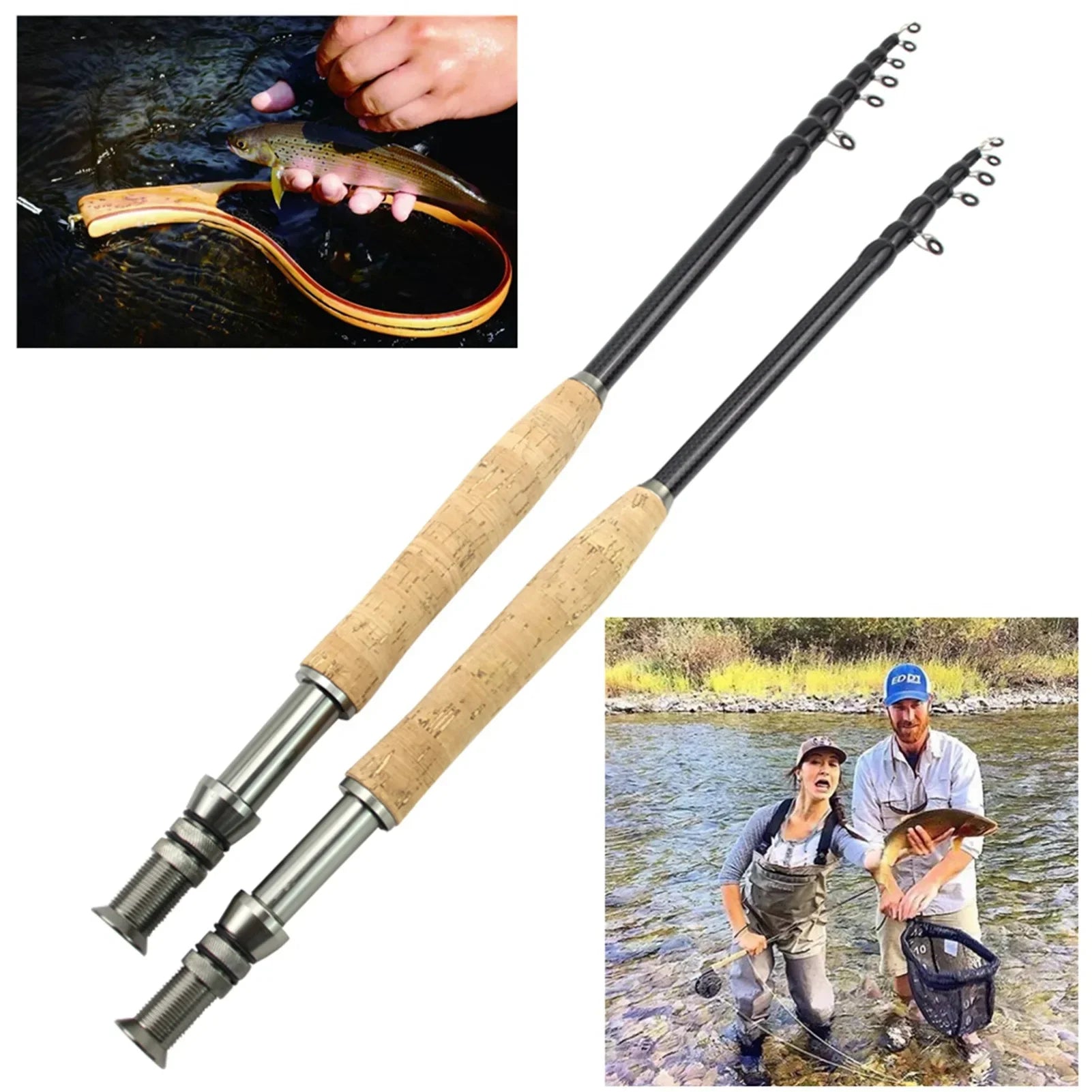 Retractable Fly Fishing Rod Carbon Fishing Rod Cork Handle Portable Fishing Rod Bass Fishing Equipment