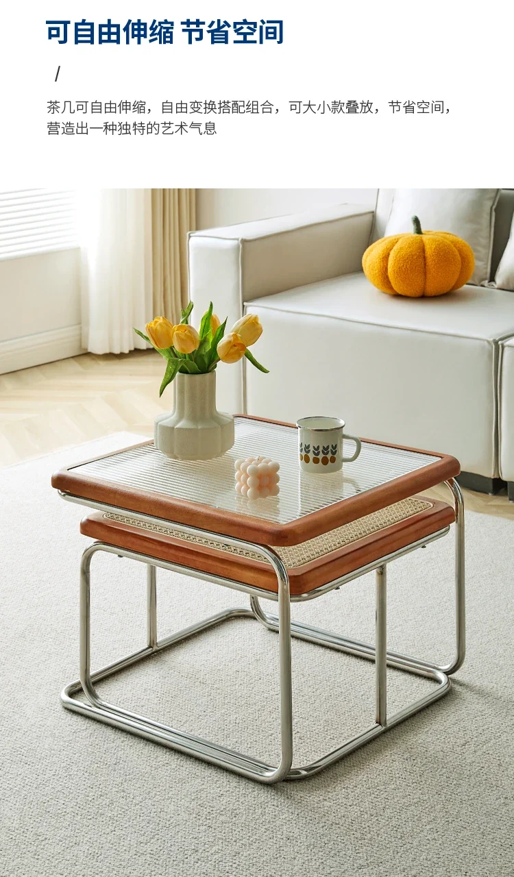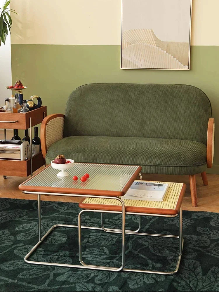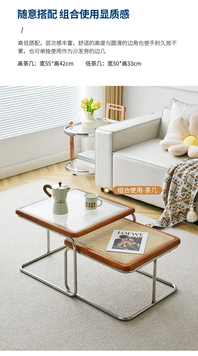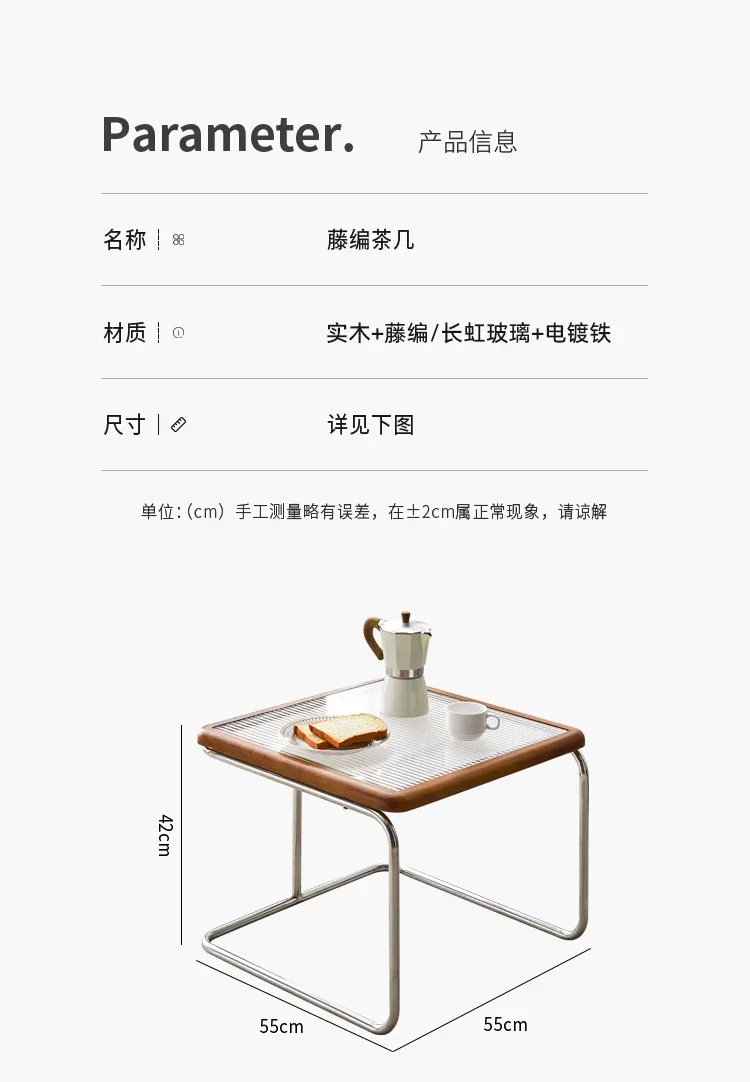 Retro Medieval Style Rattan Coffee Table Glass Side Table Living Room Corner Coffee Tables Combination Table Simple Design