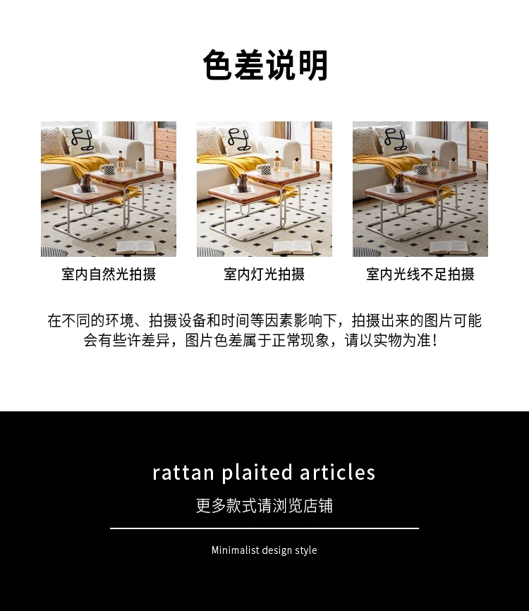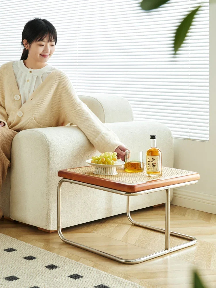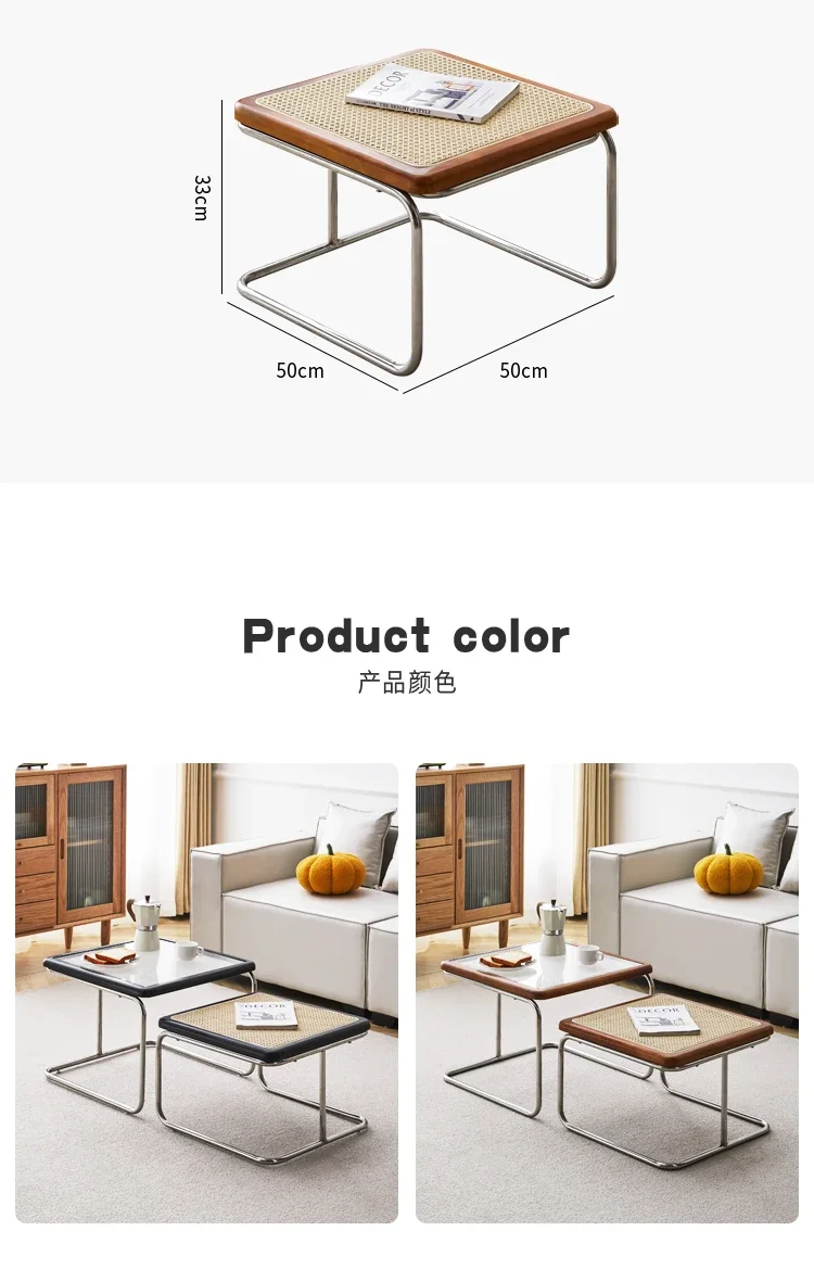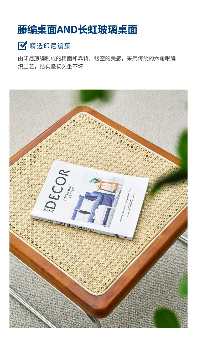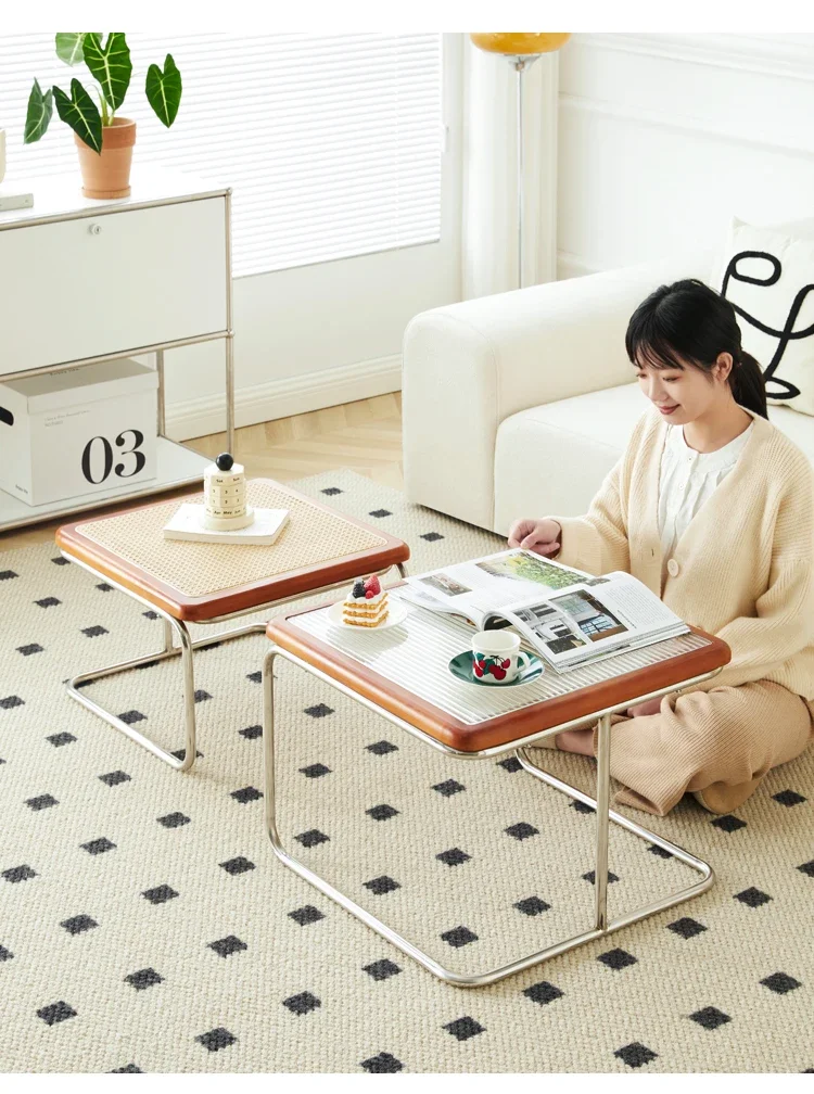 Retro Medieval Style Rattan Coffee Table Glass Side Table Living Room Corner Coffee Tables Combination Table Simple Design