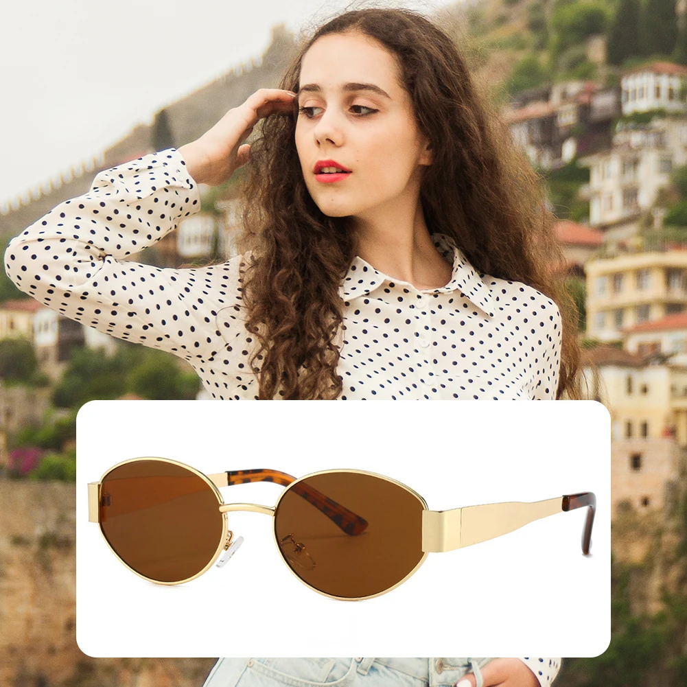Retro Sunglasses Wear Resist Trending Sun Glasses Lightweight Vintage Oval Sunglasses for Shopping Travel Vacation Party _x000D_