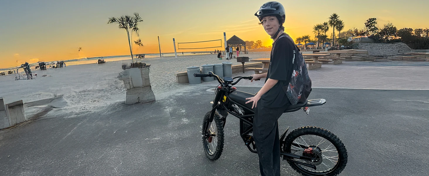 Throttle disable function, speed limit settings, 3 speed modes, triangular storage bag attached to the bike body, motorcycle footpegs included in the package.