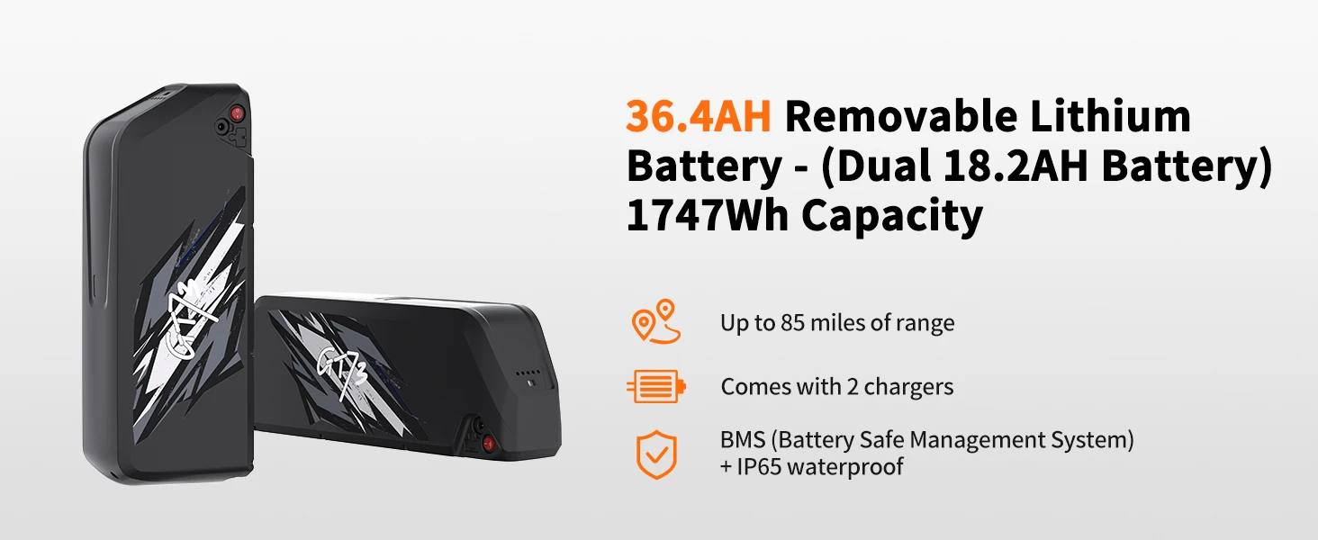 2000W Rear Gear Hub Motor, 48V / 36.4AH || Removable Dual Battery