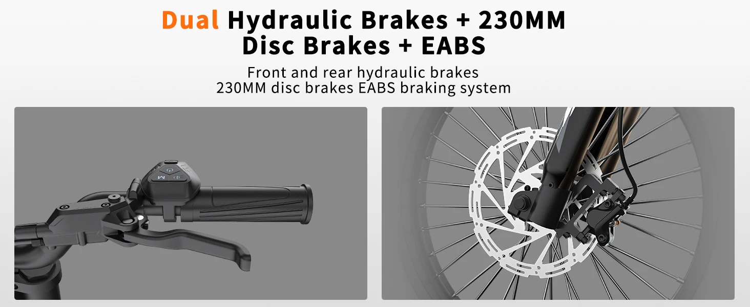 Brakes: Dual hydraulic brakes with 230MM disc brake rotor and EABS