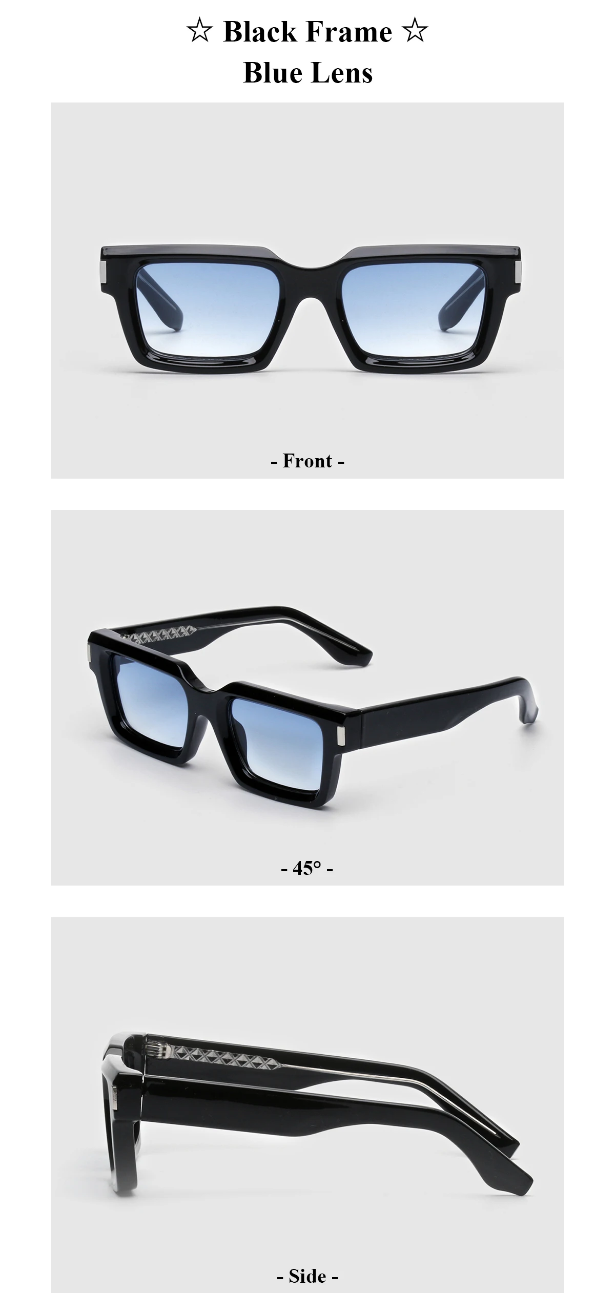 Ruiao 2025 retro black designer sunglasses vintage for women clear luxury square rectangular blue lens man UV400 high quality