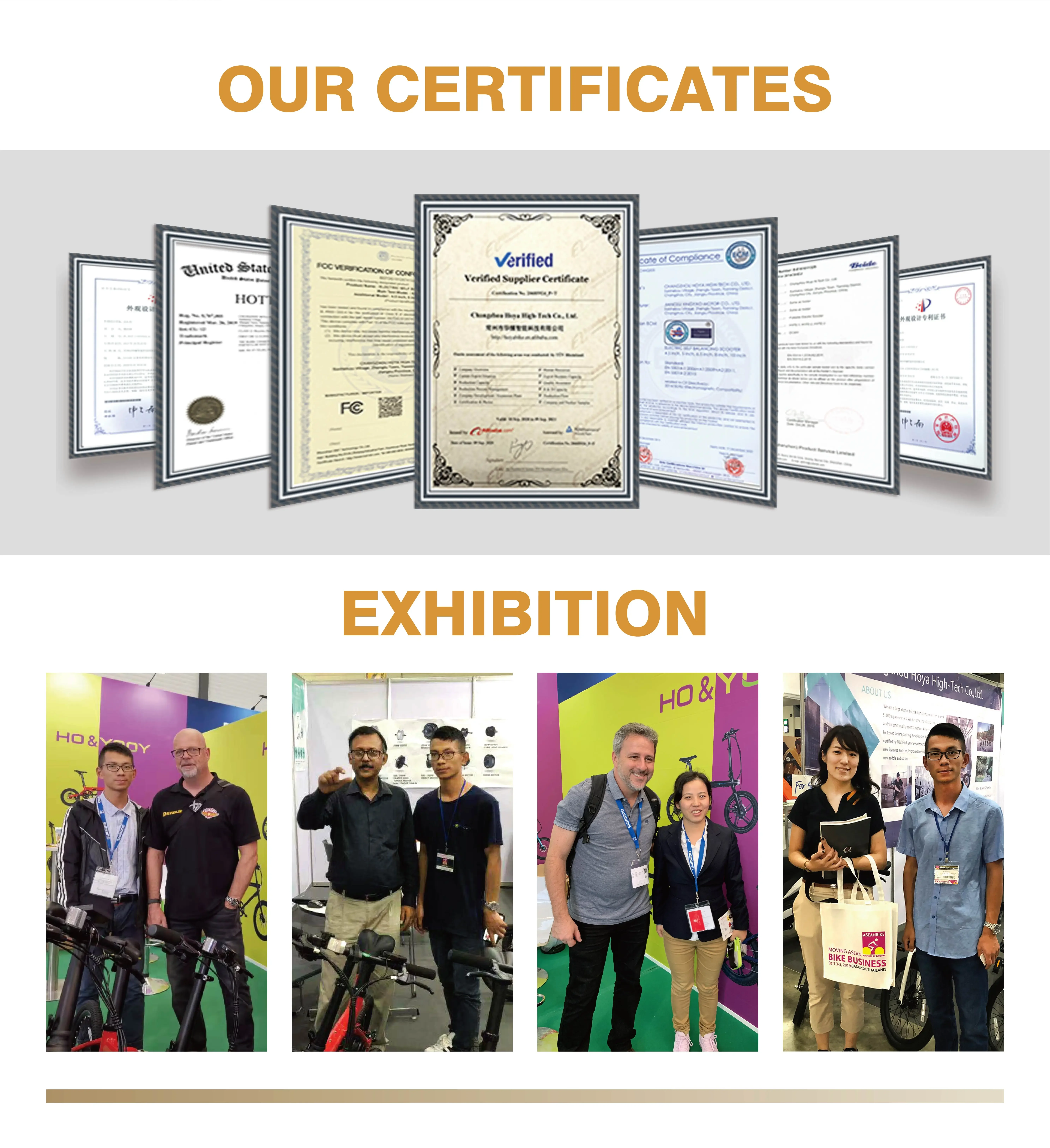 Changzhou Hoya High-Tech Co.,Ltd. is a high-tech enterprise, which integrates R&D, Manufacturing, Marketing and Sales of electric bikes. We are certified by TUV Rheinland and SGS.
