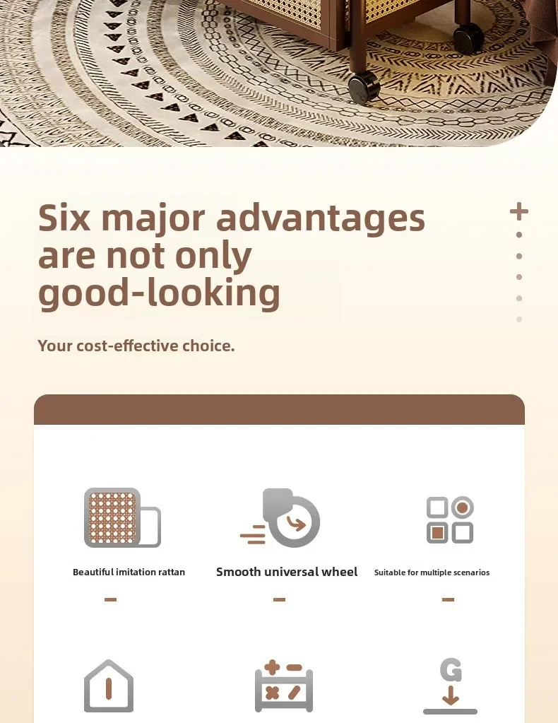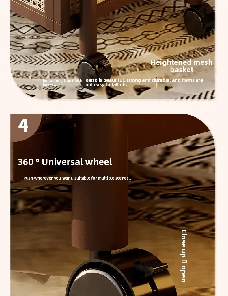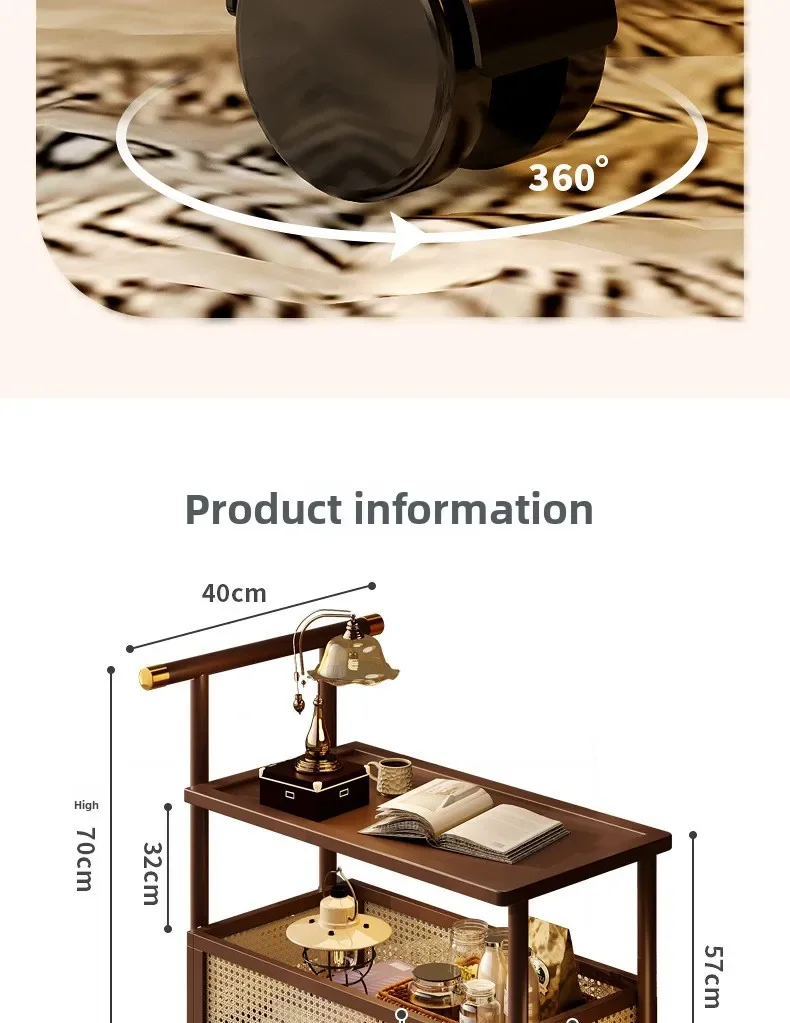 Sofa side table, antique style tea table, mobile tea table, small push table, solid wood tea cart