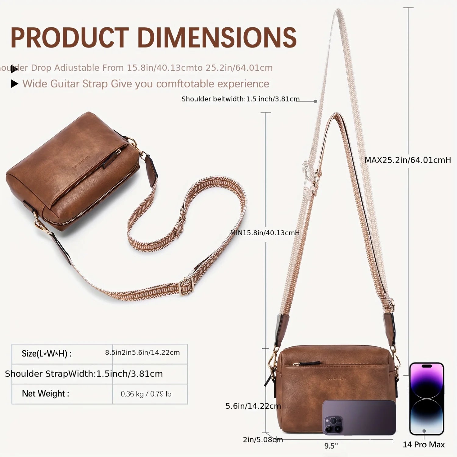 Stylish Crossbody Purse For Women - Retro Shoulder Bag With Wide Shoulder Strap and Triple Zip Cell Phone Handbag for Everyday U