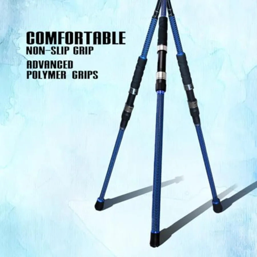 Surf Fishing Rod Carbon Surf Spinning Rod Portable Travel Saltwater Beach Blue Surf Rod with SuperPolymer Handle 8'6 10