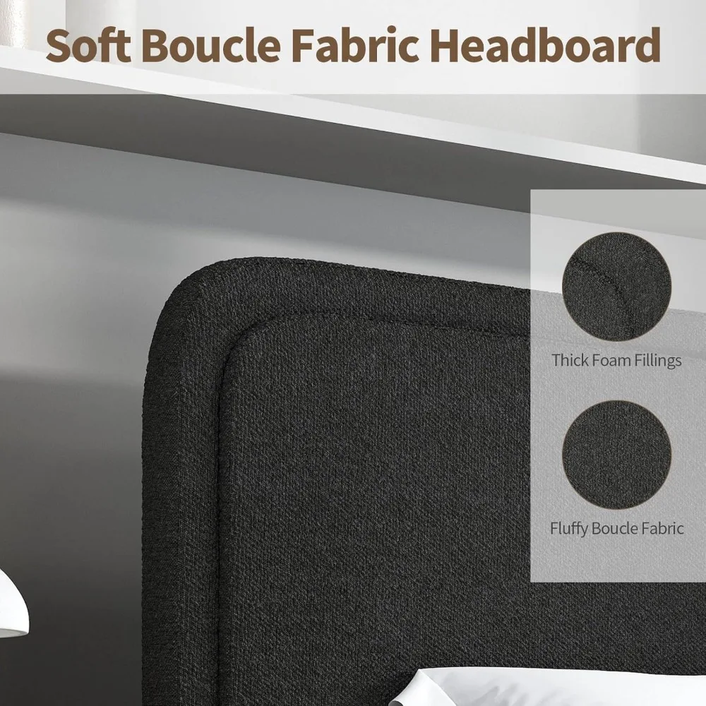 - Fully Covered in Stylish Fabric: The boucle bed frames offer a soft, welcoming feel that's perfect for creating a cozy bedroom retreat. Its versatility means it can be dressed up or down, depending on your style and the rest of your decor