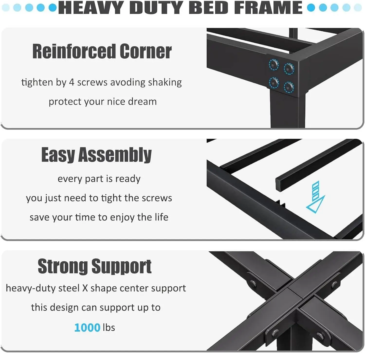 - 【Sturdy Structure】 Crafted with reinforced steel, our bed frame is built to last. Its robust construction provides unparalleled support and ensures a peaceful night's sleep.