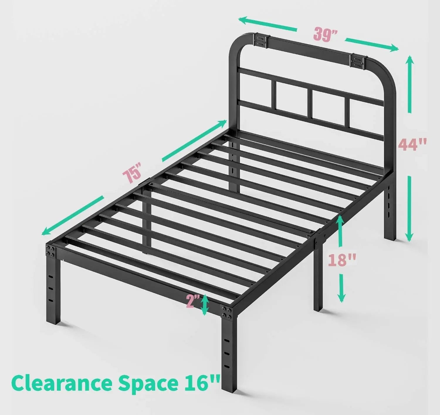 - 【18 Inch Bed Frame】This slatted bed frame is 16 inches off the floor, and it allows adequate space for your storage