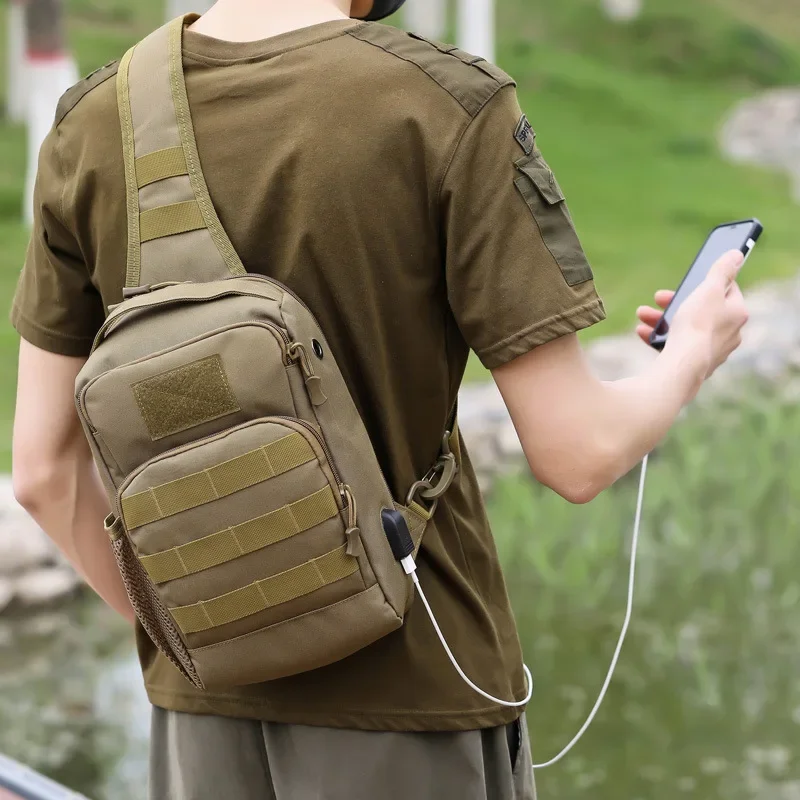 USB Tactical Chest Bag Sling Backpack Handbag Men Outdoor Sports Fishing Pure Hiking Travel Hunting Camping Shoulder Men Bags