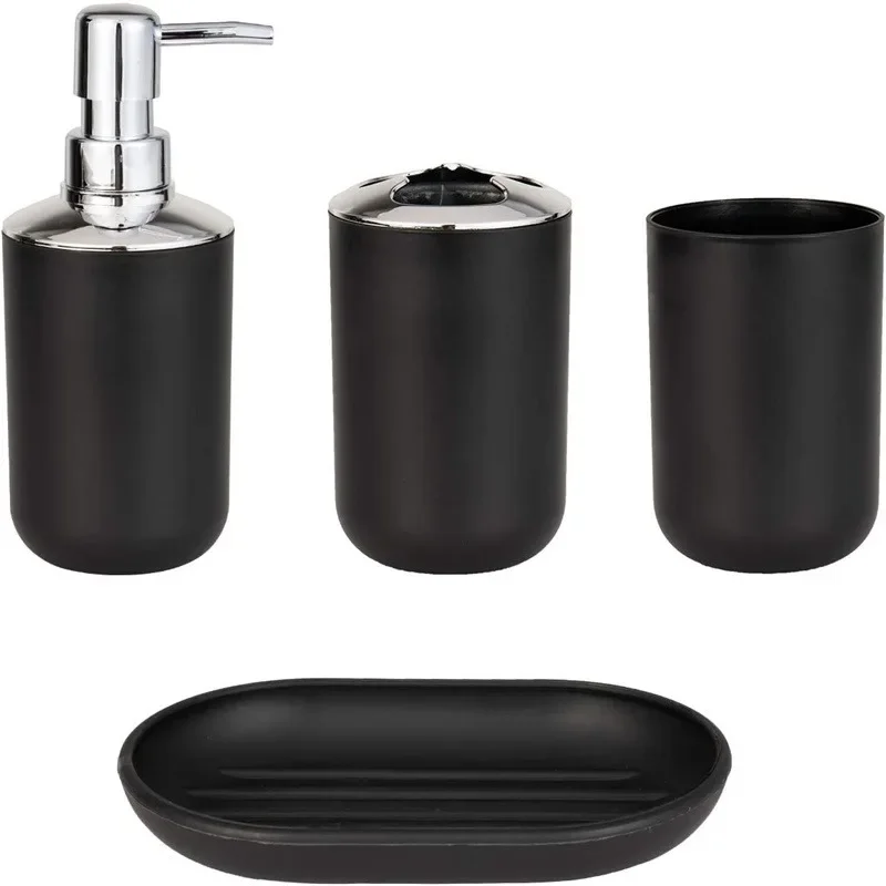 Wash Set Bathroom Decoration Accessories Lotion Bottle Soap Dish Mouthwash Cup Black Tray Household Bathroom Supplies