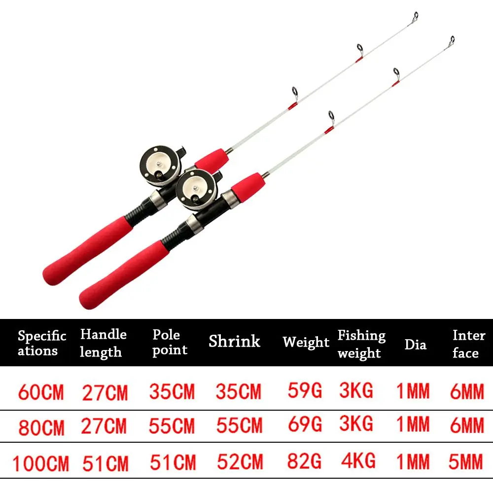 Winter Portable Travel Ice Fishing Rods Tackle Pole Fishing Reels Fishing Tackle