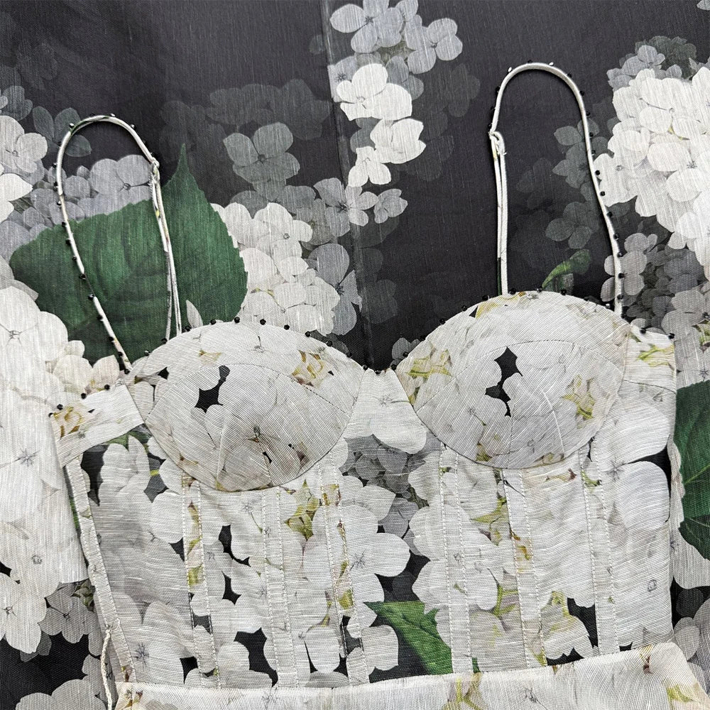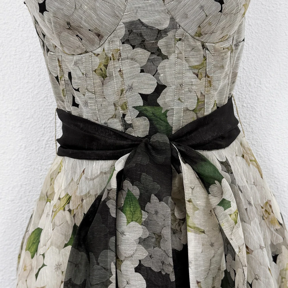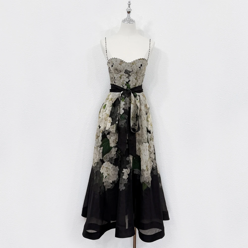 Women's dress Positioning print pattern Sleeveless Dress with Detachable fabric belt Dresses femme