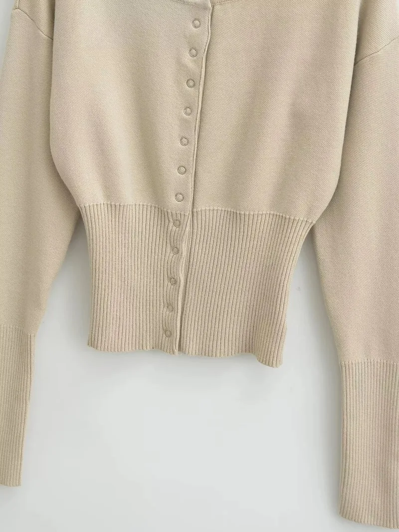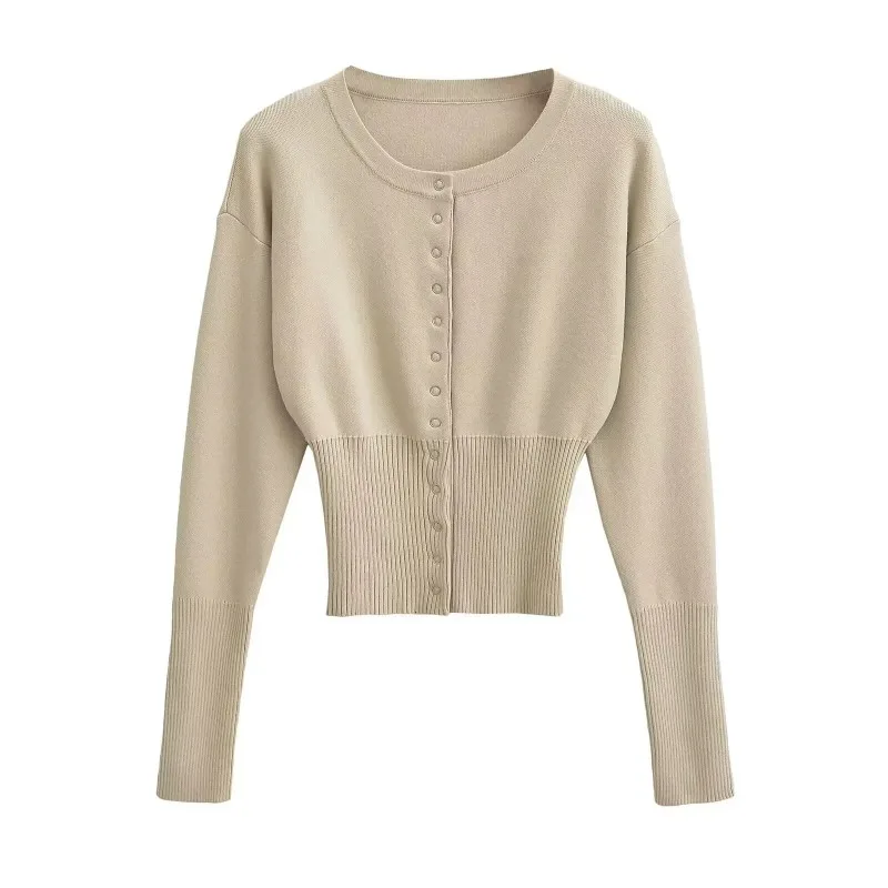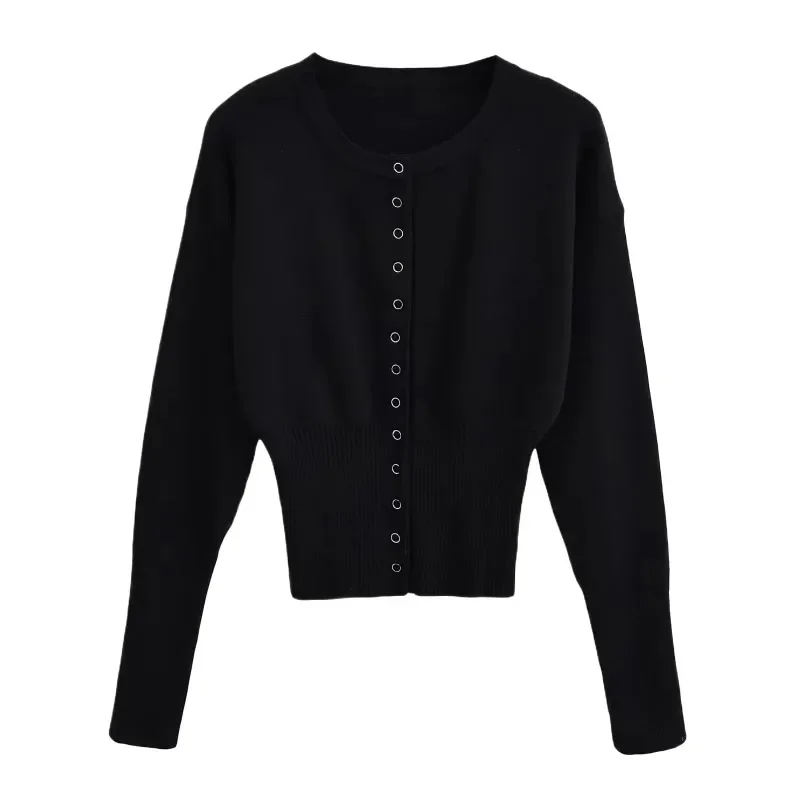 Women's High Waist Round Neck Single Breasted Cardigan Solid Long Sleeve Short Sweater Top Autumn Slim Bottoming Shirt